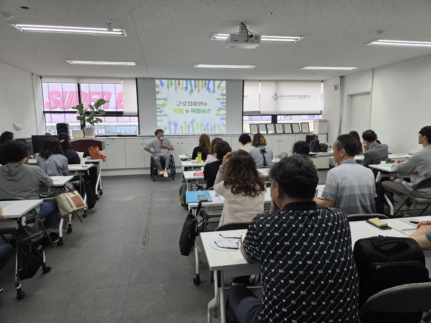 2025년 제3차 근로지원 양성교육 서구자립 뎃글수 0 조회수 425 작성일자 2025.07.18 2025년 제3차 근로지원 양성교육 진행 사진 일정 : 2025. 05. 20. / 06. 17. / 07. 08.(이론) 07. 16. - 07. 18.(실습)