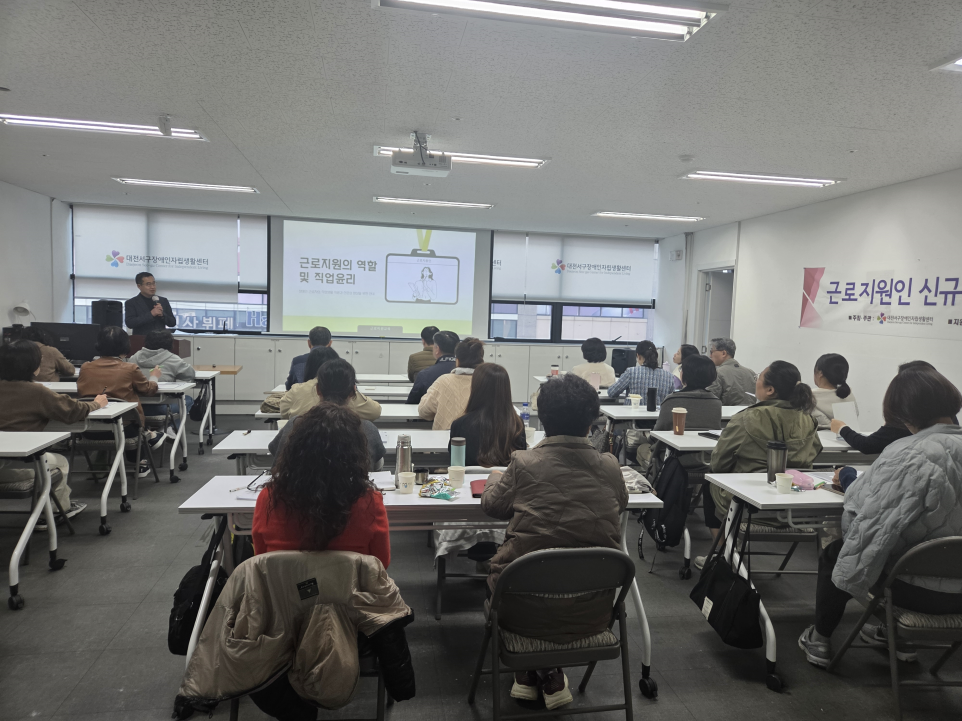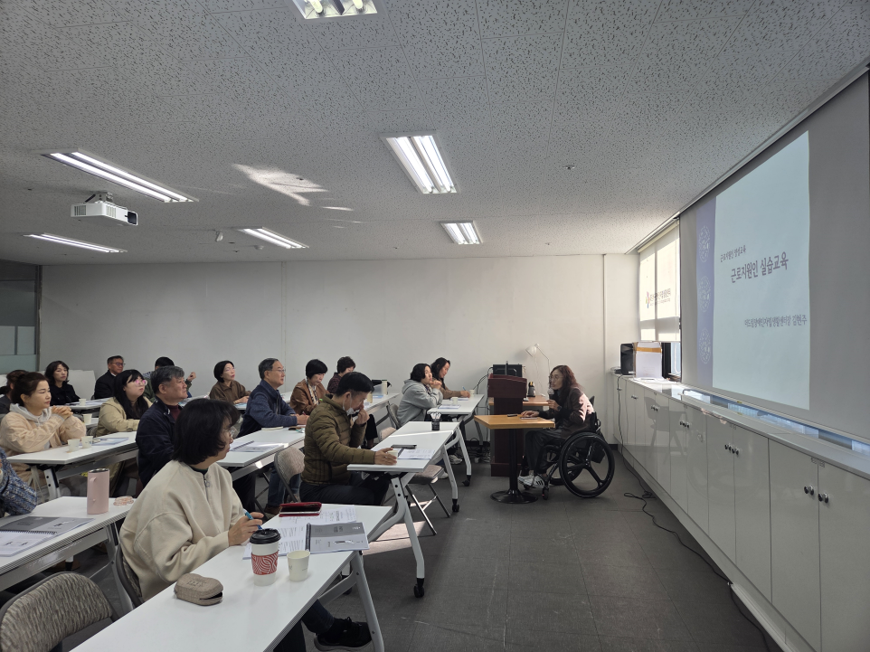 2025년 제4차 근로지원 양성교육 서구자립 뎃글수 0 조회수 438 작성일자 2025.12.05 2025년 제4차 근로지원 양성교육 진행 사진 일정 : 2025. 10. 27.- 29.(이론) 11. 06.-11. 07.(실습)