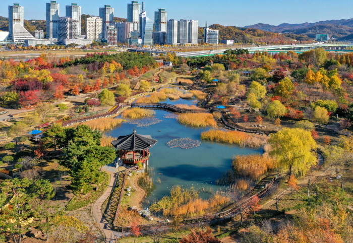 한밭수목원은 정부 대전청사와 엑스포과학공원의 중앙 부분에 있는 도심 속 인공 수목원이에요. 동원, 서원, 열대식물원으로 나누어져 있는데 하루에 돌아보기 힘들 정도로 규모가 크죠. 사계절 다양한 꽃과 나무들이 볼거리를 제공하고 다양한 편의시설이 있어 산책과 휴식 공간으로 그만이에요. 어린이놀이터가 있어 아이들 놀이와 자연체험 공간으로 좋아요. 주변에 대전예술의전당, 시립미술관, 이응노미술관 등도 있으니 함께 둘러보세요.